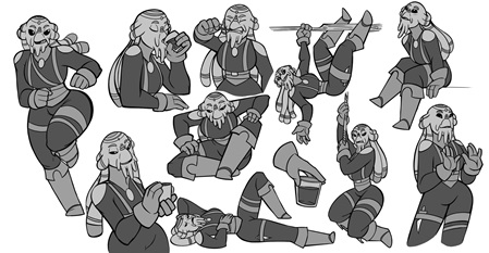 Das Design findet in der Pipeline vor der Animation und auch vor bzw. während der Erstellung des Storyboards statt. Hier werden Elemente wie Props (Gegenstände), Hintergründe und natürlich Charaktere entworfen. Wie die Charaktere am Ende aussehen, hängt vom Ton Ihres Projekts, dem gewünschten Stil und der Zielgruppe ab. Ein Design für eine Kinderserie wird anders ausfallen als ein Design für einen Horror-Kurzfilm oder Ego-Shooter. Wichtig ist auch, ob Ihr Projekt eher realistisch oder stilisiert sein soll und welche Art von Animation Sie bevorzugen – und natürlich das verfügbare Budget.